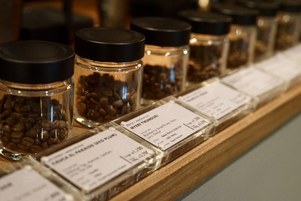 店頭では様々なコーヒー豆を購入することができます。価格は1600円/100g〜4200円/50gまで幅広く、時期によっても入れ替わるそうです!