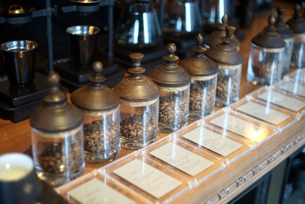 1杯あたり1200円~5000円程度と価格はかなり高価格帯。それぞれの豆の特徴を説明してもらいながら選んでいきます。コーヒーは1杯から2〜3杯の飲み比べセットもあります。2杯だと300円、3杯だと500円OFFです!ドリップ、ラテ、エスプレッソから選べます。